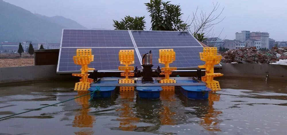 Sistema completo de aireación solar diseñado para aplicaciones en acuacultura, este aireador flotante de 1000W funciona con corriente directa a 48V y está alimentado por paneles solares y baterías integradas. Ideal para estanques de peces o camarones en ubicaciones rurales o fuera de red eléctrica.