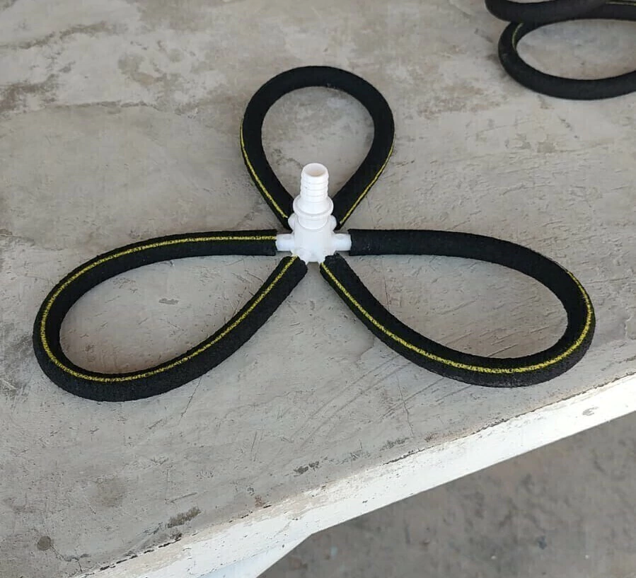 Creado con una manguera especializada de aireación, este moño garantiza una óptima difusión de oxígeno en acuarios, estanques acuícolas y sistemas de tratamiento de agua.
